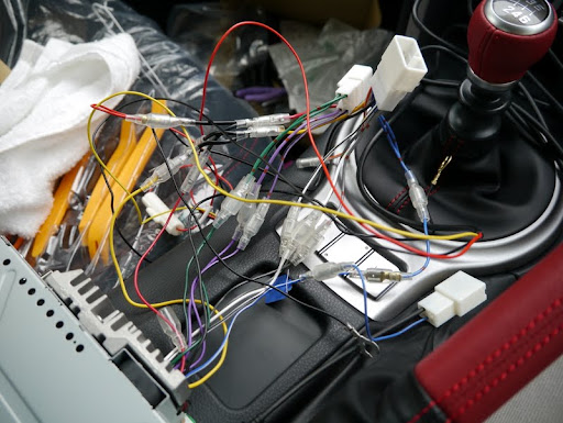 今回は配線キットを買ってあるのでとりあえずコネクタを接続する前まではクーラーの効いた車内で作業。